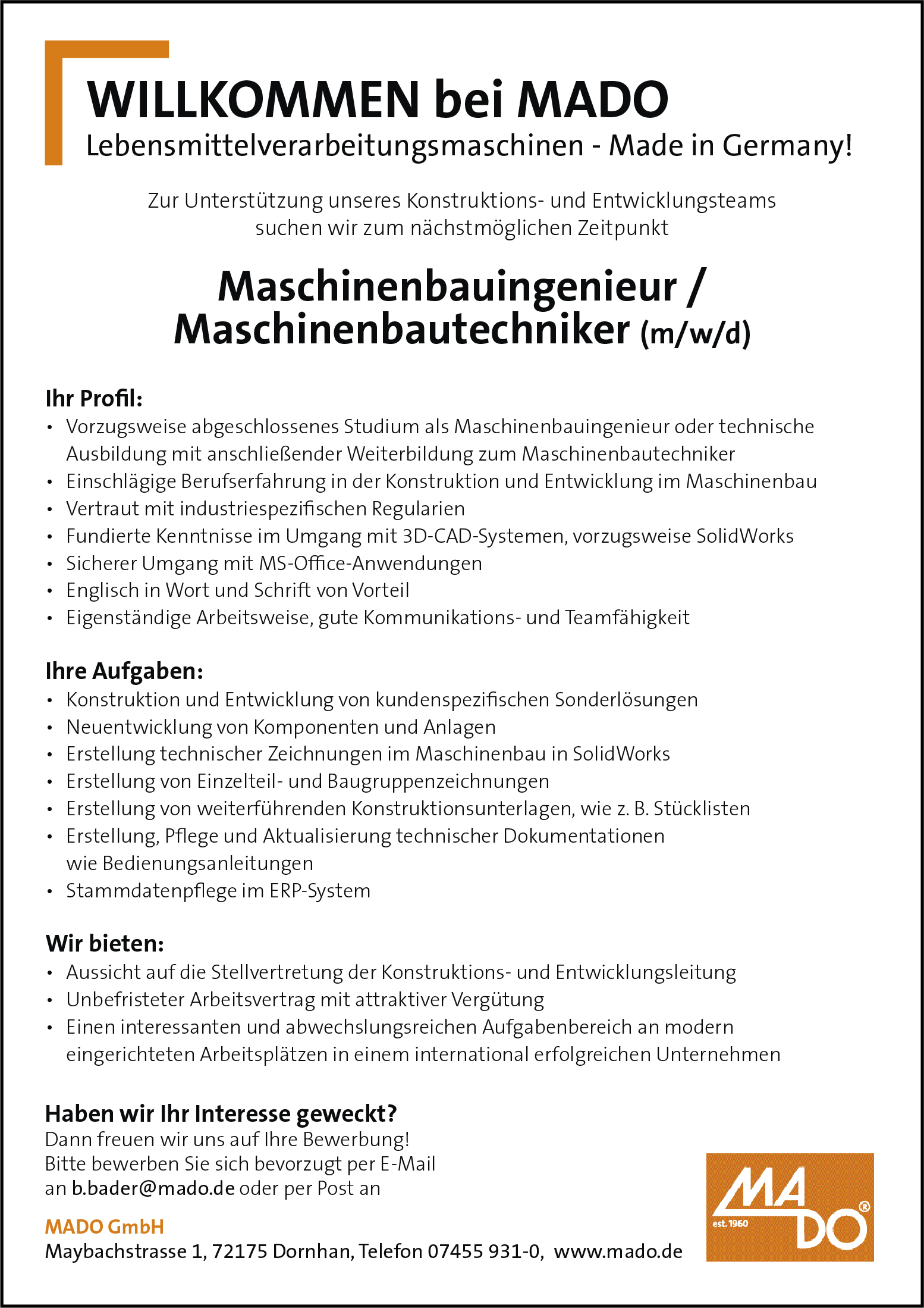 | Markus Lehmann m.lehmann@mado.de | +49 7455 931-130 | |